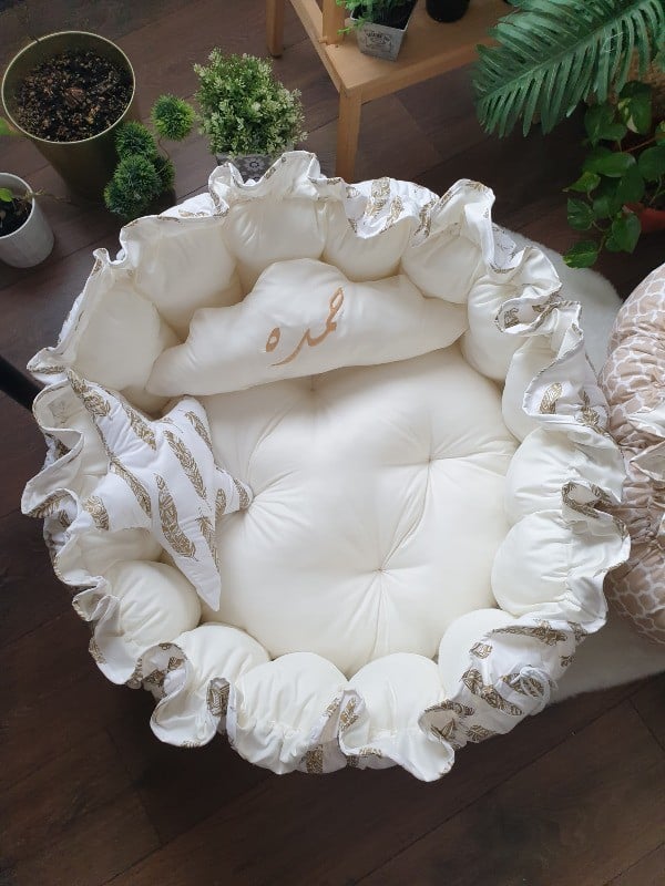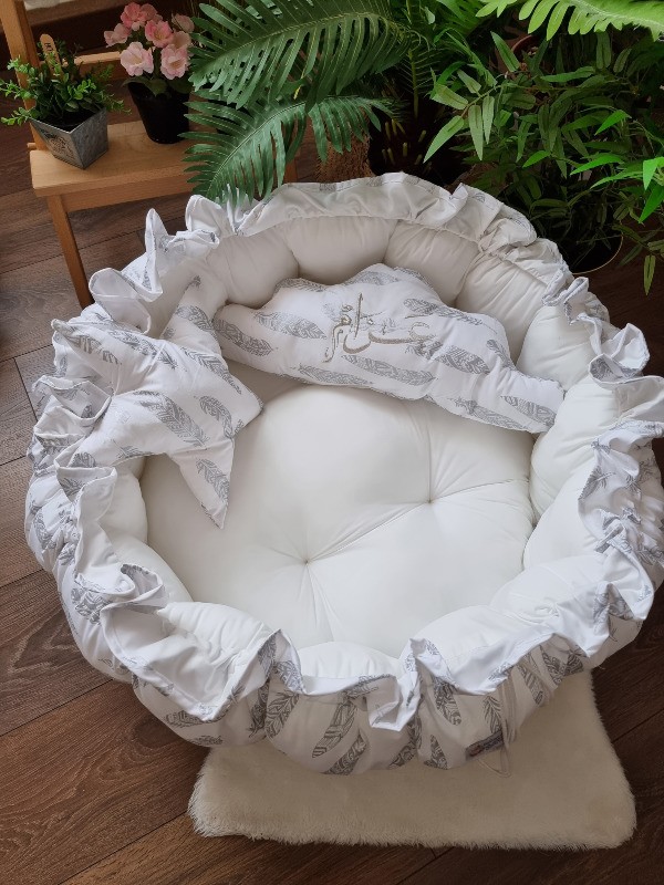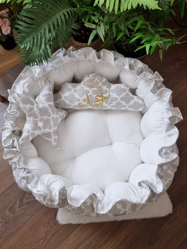 سرير مواليد دائري قابل للزم مع خدادية الغيمة والنجمة الوان محايد للجنسين