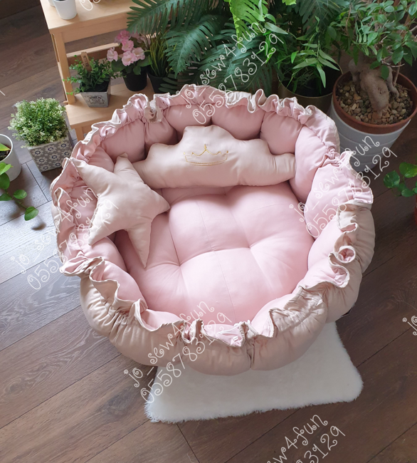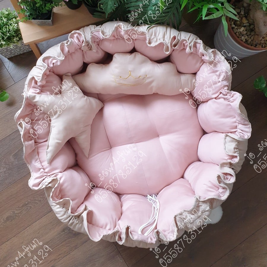 سرير مواليد دائري قابل للزم مع خدادية الغيمة والنجمة يتوفر بلونين بناتي