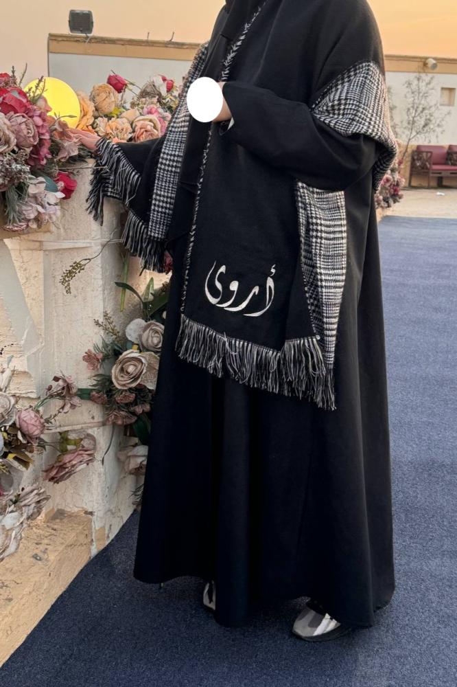 ▪︎اللون شال اسود من جهه والجهه الثانية اسود وابيض كاروهات