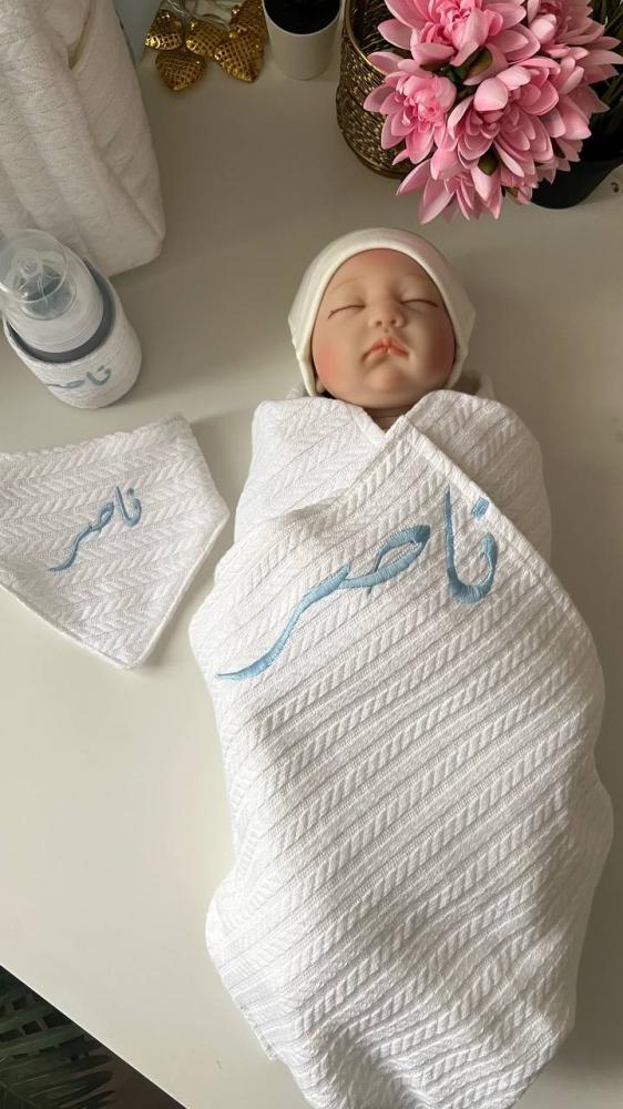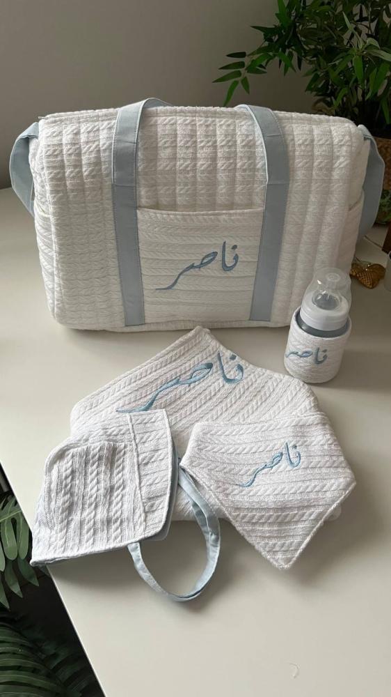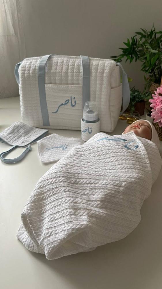 طقم مواليد مكون من ٥ قطع لون أبيض مع ازرق سماوي