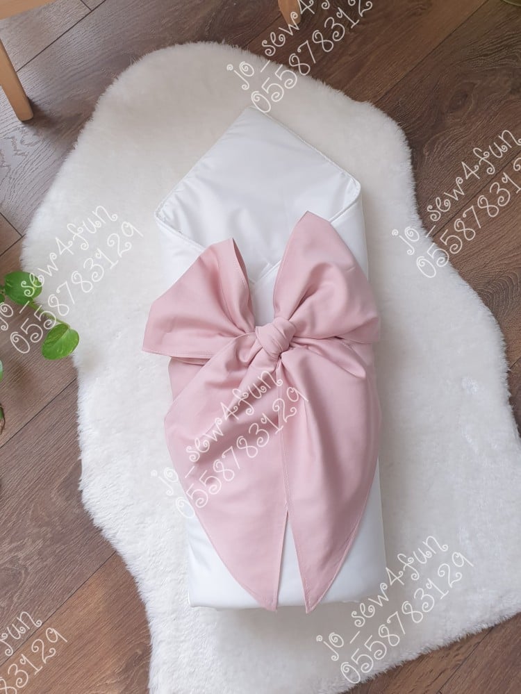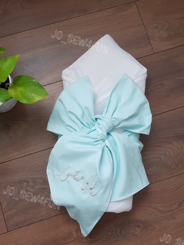 - مفرش مواليد مورد مع فيونكة عريضة متحركة (ممكن ازالتها تستخدم بحسب الرغبة)